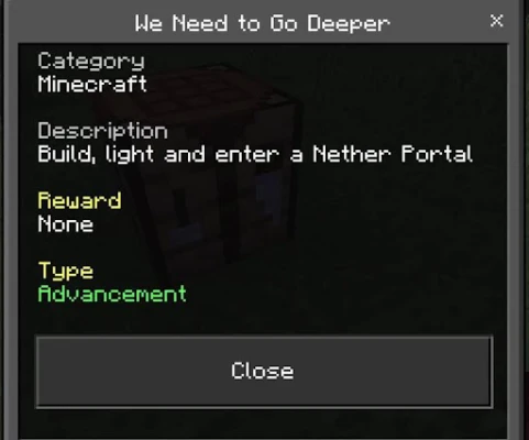 Just like in Java Edition, you'll receive a pop-up notification when you complete a specific task, like crafting your first stone pickaxe or entering the Nether.