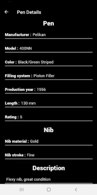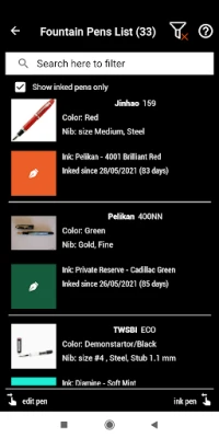 My fountain pens is the application about all of your past, present and future fountain pens and inks. It will give you an answer to the question: which fountain pens do I already have and why do I need one more? Or two?