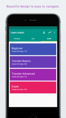 All Arabic phrases and words are presented to you in both phonetic and original Arabic writing. They are recorded by a native speaker from arabic countries.
