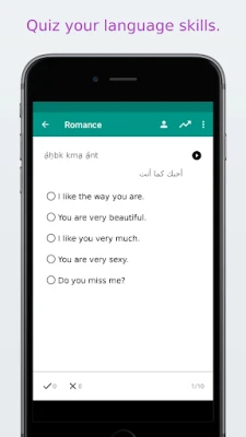 ✓ Adjust the quiz and flashcards settings for Arabic to English, English to Arabic