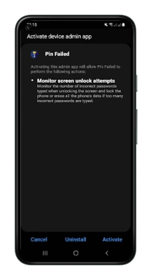 Keep track of all failed PIN unlock attempts made on your Android Device. Pin Failed will also attempt to take selfies of the person trying to unlock your device.