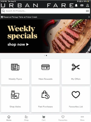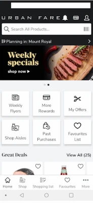 Shopping Highlights · Order groceries online · View the latest Urban Fare flyer · Scan More Rewards card in-store · Load My Offers to More Rewards card · Browse past purchases and favourites · Browse store departments · Browse Shoppable Recipes · Scan Product Barcodes · Pharmacy Refill – Yaletown location only